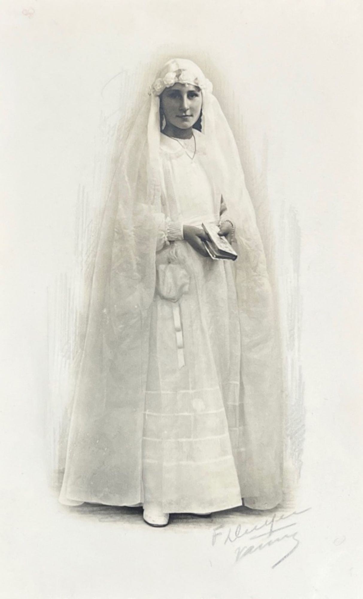 « La procession était ouverte par les filles de service habillées en uniforme ; elles portaient la croix : la bannière de la Vierge venait ensuite ; l’honneur de la porter a été accordé aux élèves des sections bleues ; les sections des nacarats et des blanches portaient le dais et les cordons du dais ; cinquante petites élèves [...] venaient ensuite [...] ; et marchaient devant le Saint-Sacrement. »