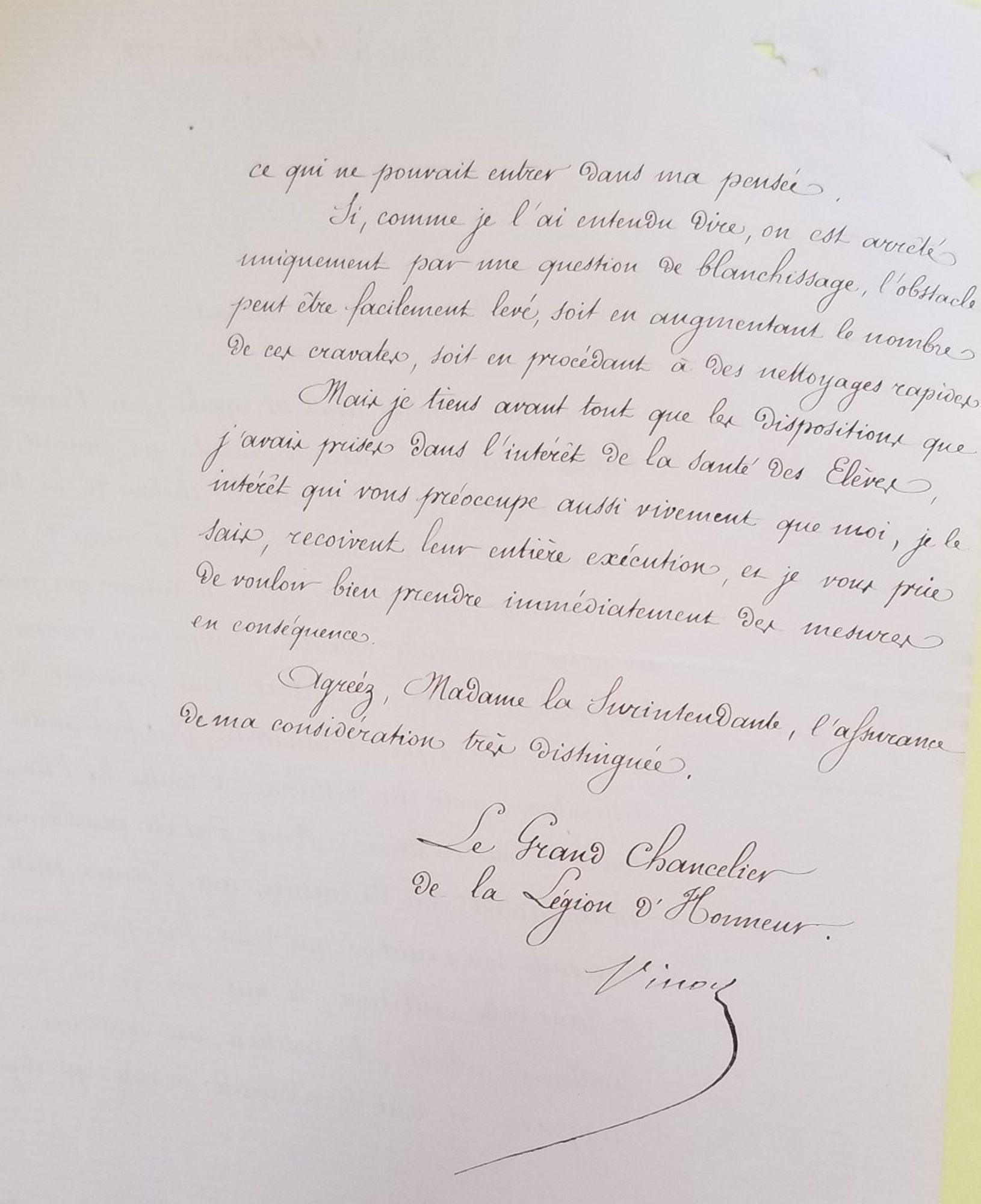 Il est pourtant « péniblement surpris » de découvrir que les élèves ne portent les lainages que deux fois par semaine, risquant ainsi leur santé. Dans son courrier, il presse la surintendante de « prendre immédiatement des mesures en conséquence ».