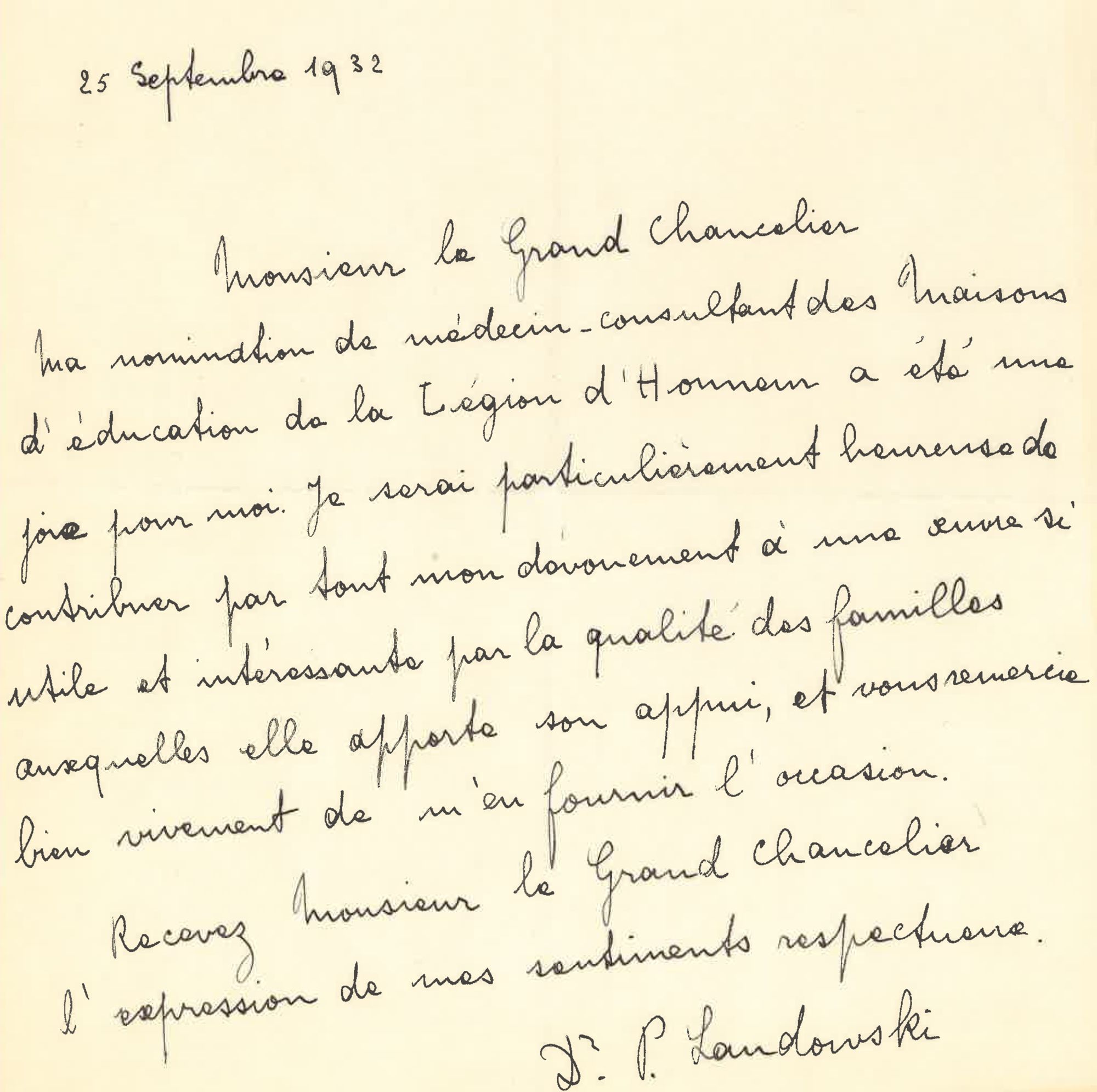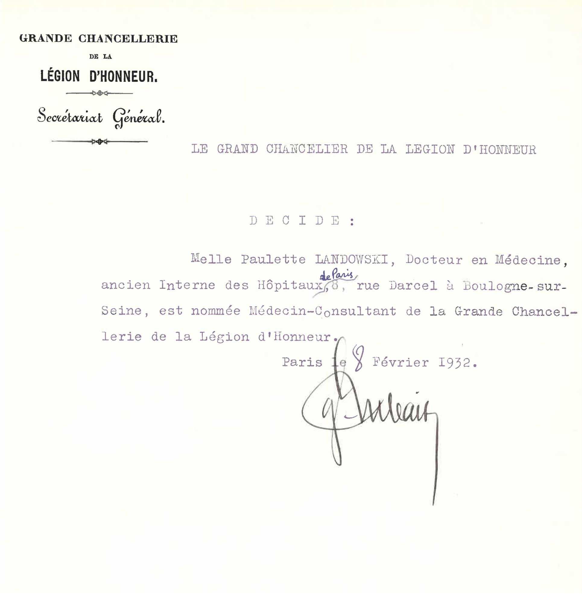 Paulette Landowski, médecin consultant des maisons d'éducation de la Légion d'honneur