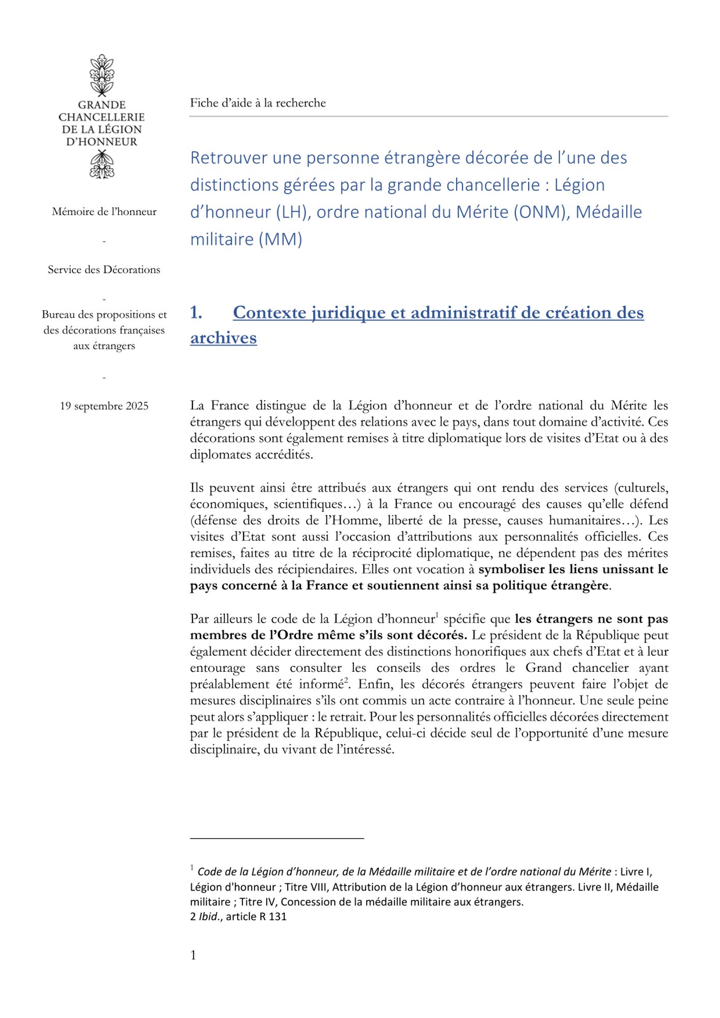 Vous recherchez un(e) décoré(e) étranger de la Légion d'honneur ou de l'ordre national du Mérite vivant(e) ou décédé(e)